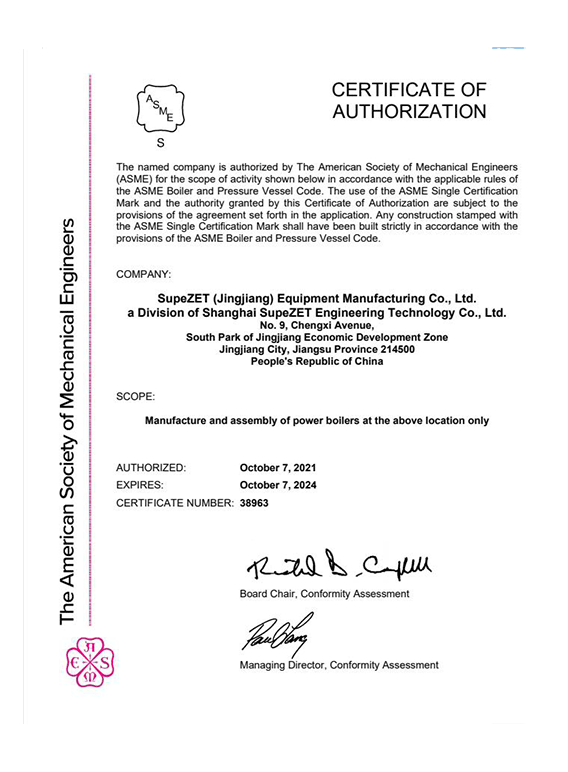 ASME certificate
